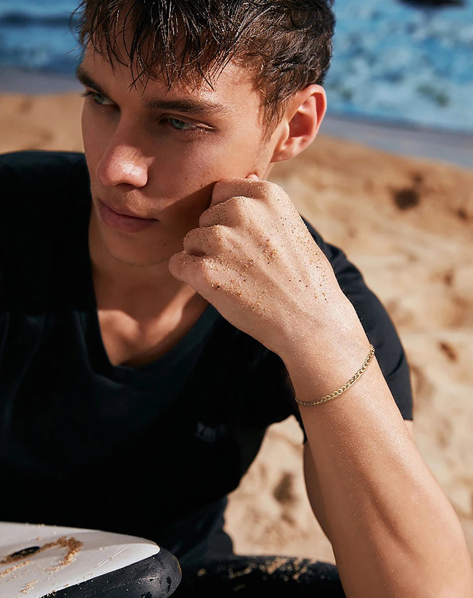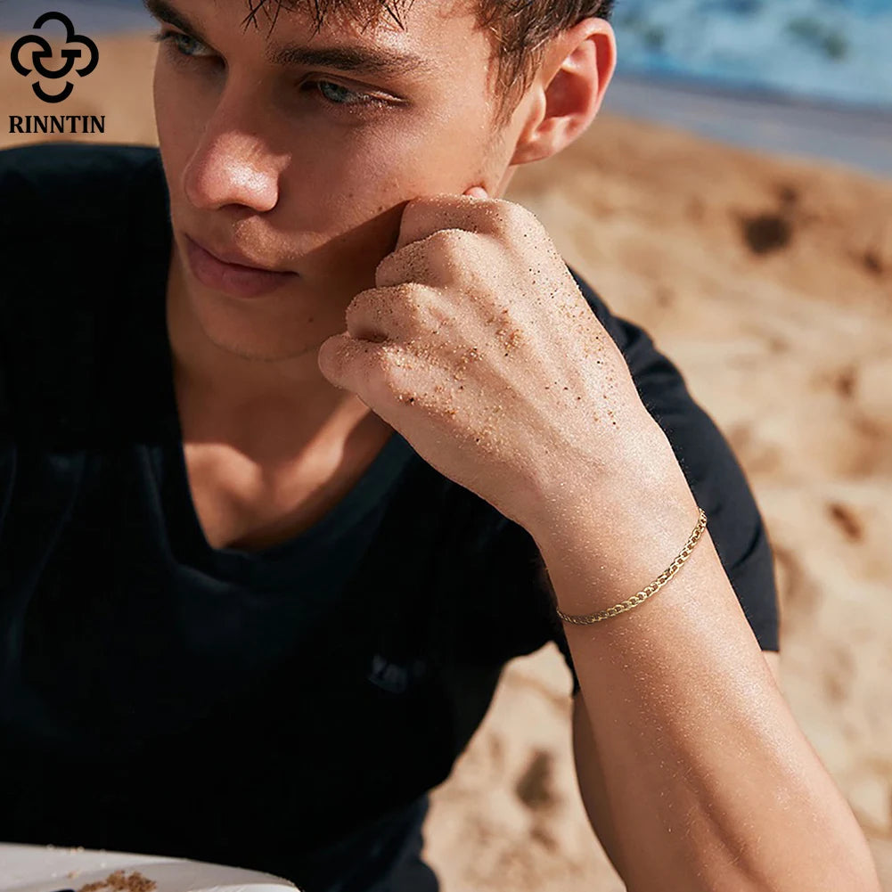 18K Gold Over 925 Sterling Silver 3mm Italian Cuban Chain Bracelet for Women Men Trendy Silver Bracelet Jewelry SB123